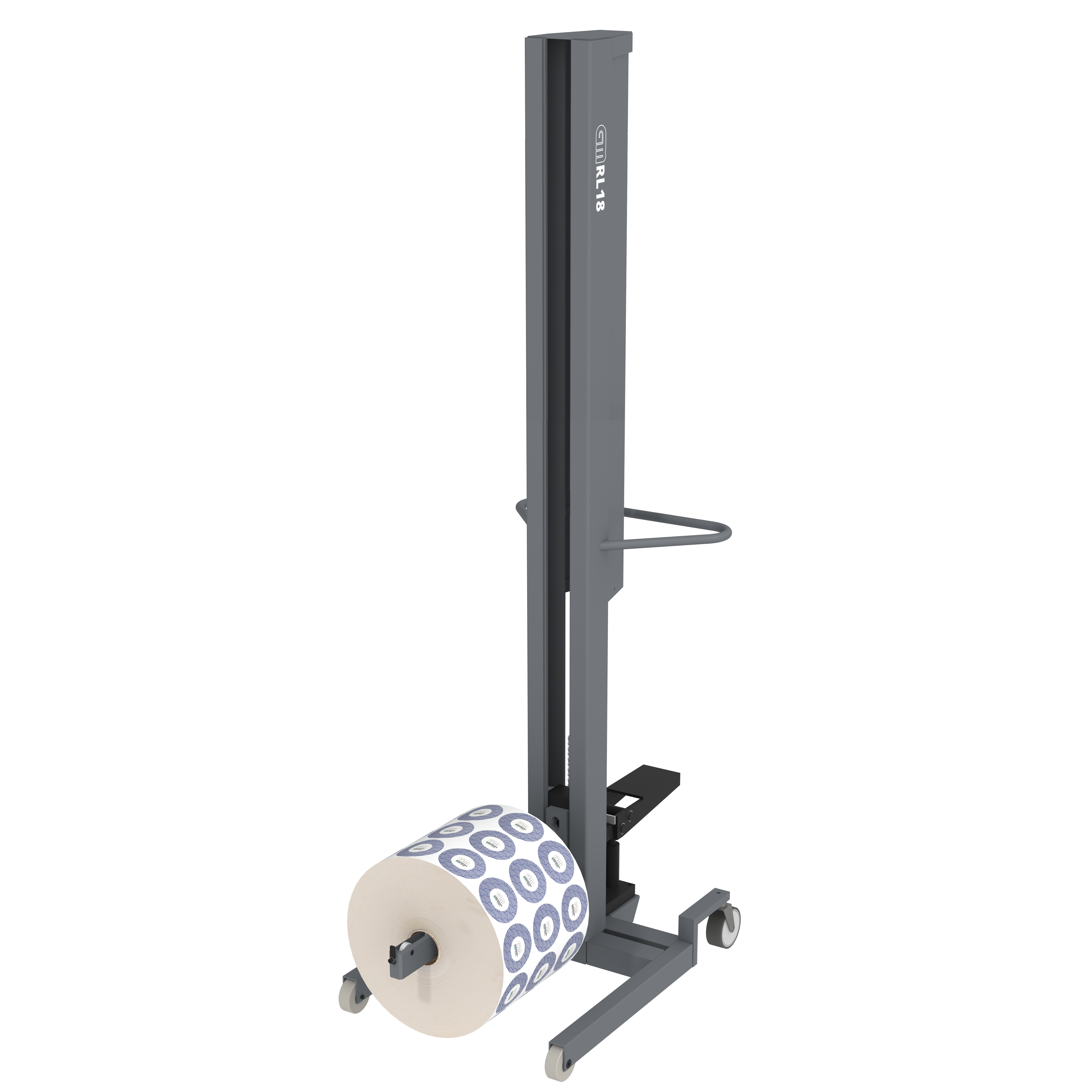 The RL18 unit features manual lifting and comprises a robust welded frame, two fixed front wheels, and 360-degree rear wheels. The distance between the front wheels has been adjusted so that the unit can pass underneath a EUR pallet.